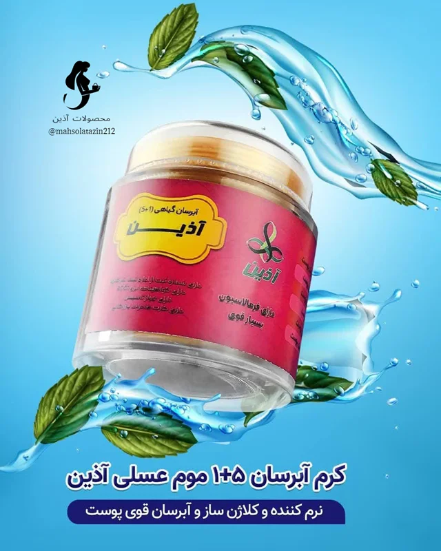 آیا از خشکی، کدری و چین و چروک پوست خود خسته شدهاید؟ به دنبال راهکاری طبیعی و قدرتمند برای بازگرداندن طراوت و جوانی به پوستتان هستید؟ کرم آبرسان 5+1 آذین (معروف به کرم موم عسلی آذین)، پاسخی جامع به تمامی نیازهای پوست شماست. این کرم شگفتانگیز 90 گرمی، با فرمولاسیون منحصر به فرد و کاملاً گیاهی، نه تنها یک مرطوبکننده ساده نیست، بلکه یک درمانگر کامل برای انواع پوست، حتی حساسترین آنها به شمار میرود.